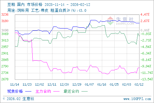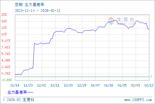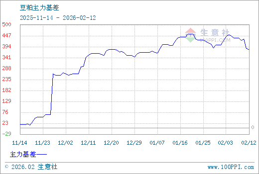 注: 1、从2025-11-14 至 2026-02-12期间,豆粕主力基差最大值为456.00,最小值为15.00。