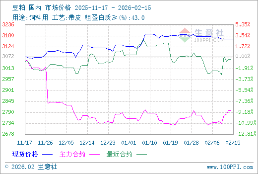 注: 1、从2025-11-17 至 2026-02-15期间,豆粕主力基差最大值为456.00,最小值为15.00。
