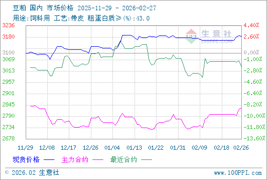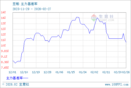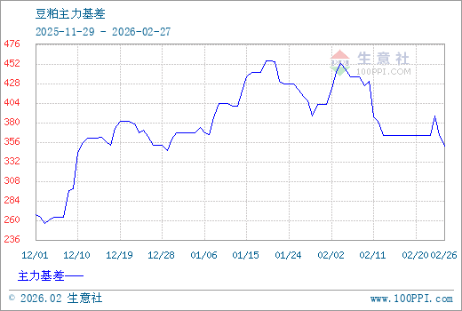 注: 1、从2025-11-29 至 2026-02-27期间,豆粕主力基差最大值为456.00,最小值为256.00。
