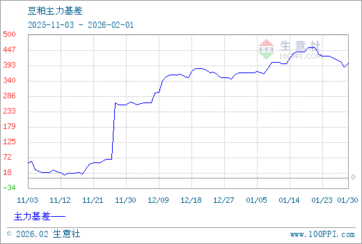 注: 1、从2025-11-03 至 2026-02-01期间,豆粕主力基差最大值为456.00,最小值为10.00。