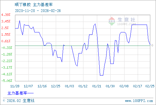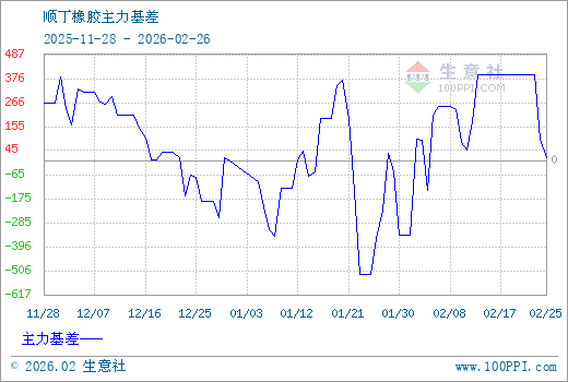 注: 1、从2025-11-28 至 2026-02-26期间,丁二烯橡胶主力基差最大值为395.00,最小值为-525.00。