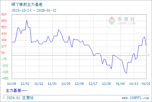 注: 1、从2025-10-24 至 2026-01-22期间,丁二烯橡胶主力基差最大值为705.00,最小值为-350.00。