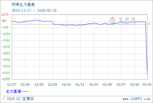 注: 1、从2025-11-27 至 2026-02-25期间,丙烯主力基差最大值为523.75,最小值为-6276.00。