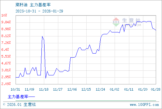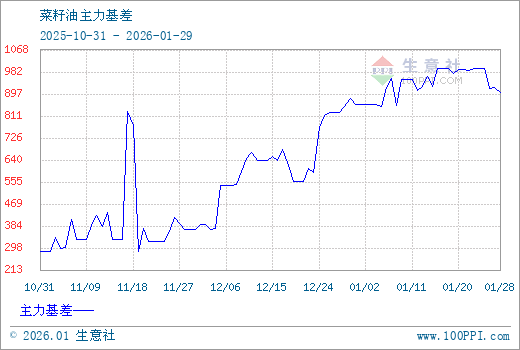 注: 1、从2025-10-31 至 2026-01-29期间,菜籽油OI主力基差最大值为997.00,最小值为284.33。