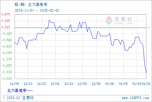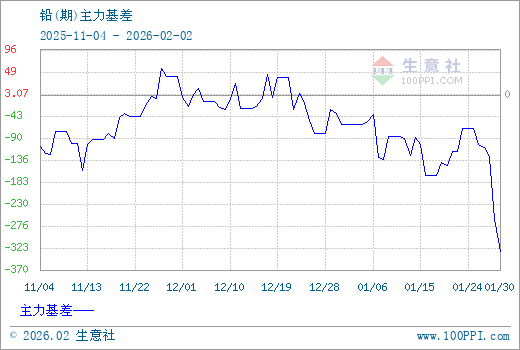 注: 1、从2025-11-04 至 2026-02-02期间,铅主力基差最大值为57.50,最小值为-331.25。