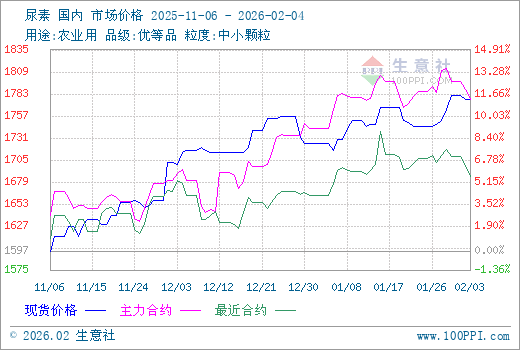 注: 1、从2025-11-06 至 2026-02-04期间,尿素主力基差最大值为73.50,最小值为-58.50。