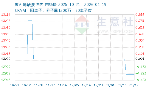 | CPAM,阳离子,30离子度 | 7800元/吨 | 33吨 | 即期现货 | 河南省 | 01-19 21:07 | 3天 |