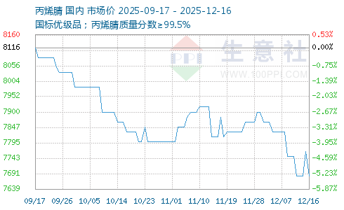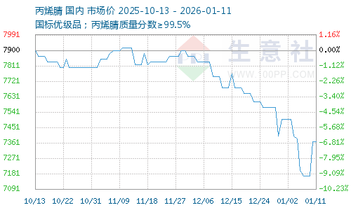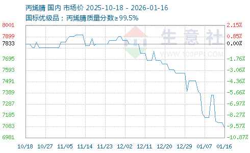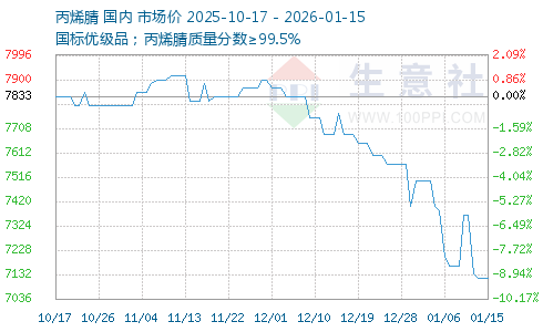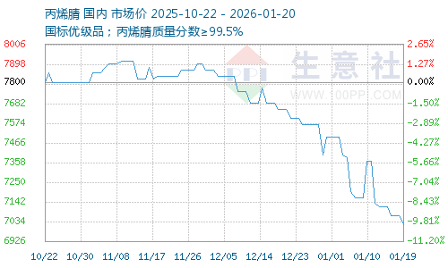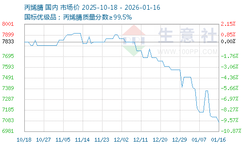 | 国标优级品;丙烯腈质量分数≥99.5% | 7600元/吨 | 1吨 | 即期现货 | 山东省 | 01-19 10:35 | 3天 |