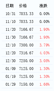 对商品价格的月末价与商品的月初价进行比较,如果月末价较月初价上涨,即用红柱;如果月末价较月初价下跌,即用绿柱。