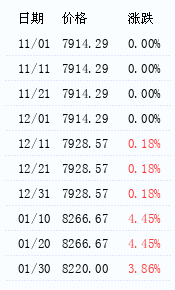 对商品价格的月末价与商品的月初价进行比较,如果月末价较月初价上涨,即用红柱;如果月末价较月初价下跌,即用绿柱。