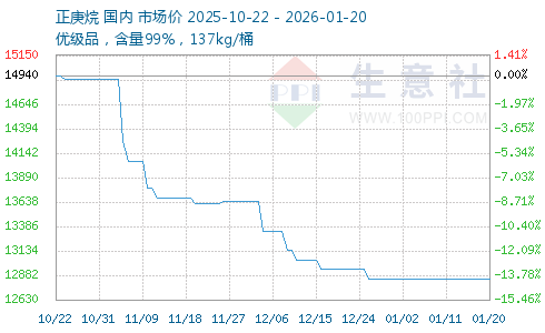 | 优级品,含量99%,137kg/桶 | 13500元/吨 | 30吨 | 即期现货 | 湖北省 | 01-20 13:34 | 3天 |