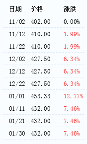 对商品价格的月末价与商品的月初价进行比较,如果月末价较月初价上涨,即用红柱;如果月末价较月初价下跌,即用绿柱。