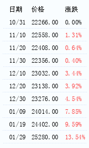 对商品价格的月末价与商品的月初价进行比较,如果月末价较月初价上涨,即用红柱;如果月末价较月初价下跌,即用绿柱。
