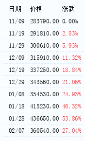 | 云锡 牌号:Sn99.90 | 378000元/吨 | 30吨 | 即期现货 | 上海 | 02-05 13:33 | 1天 |