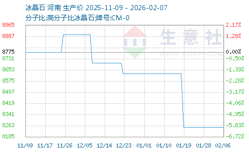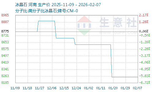 | 分子比:高分子比冰晶石;牌号:CM-0 | 7300元/吨 | 35吨 | 即期现货 | 山东省 > 济宁市 | 02-07 14:09 | 3天 |