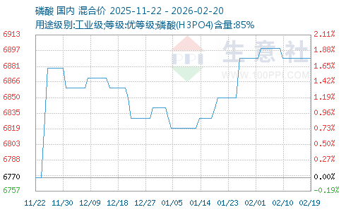 | 用途级别:工业级;等级:优等级;磷酸(H3PO4)含量:85% | 7000元/吨 | 100吨 | 即期现货 | 山东省 > 济南市 | 02-18 11:38 | 3天 |