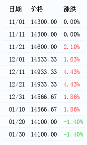 对商品价格的月末价与商品的月初价进行比较,如果月末价较月初价上涨,即用红柱;如果月末价较月初价下跌,即用绿柱。