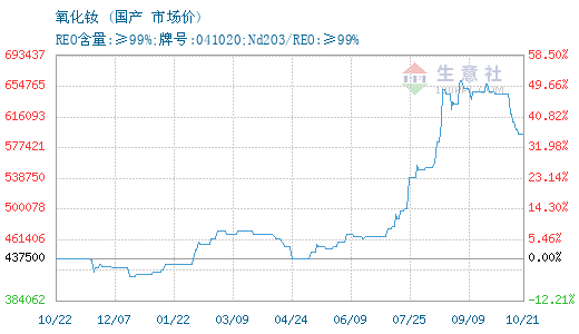 - 10-21生意社:10月21日国内镨钕系部分价格上涨