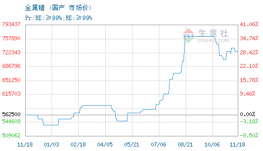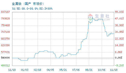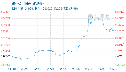 更多>>生意社:11月18日国内镨钕系部分价格上...