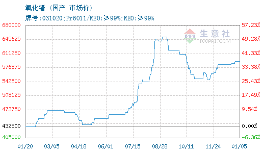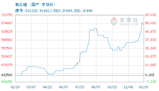 - 01-201月20日生意社氧化镨基准价为672500.00元/吨