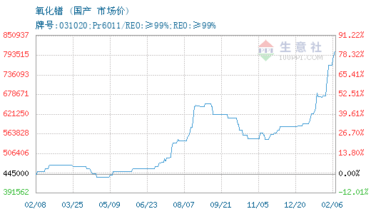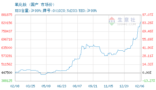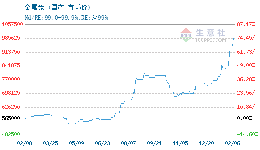 更多>>生意社:2月6日国内镨钕系价格走势上涨...