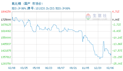 - 02-06生意社:2月6日国内镝铽系价格走势暂稳