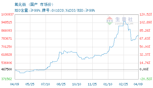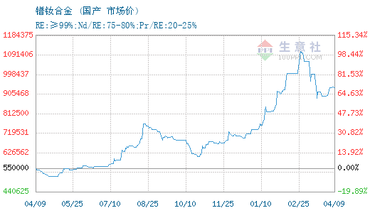 更多>>生意社:4月9日国内镨钕系稀土价格下滑...