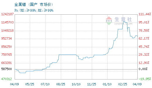 - 04-094月9日生意社氧化镨基准价为807500.00元/吨