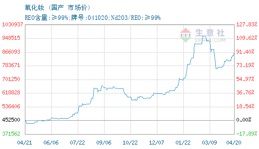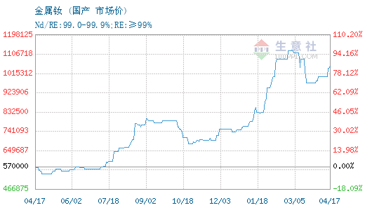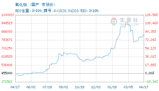 - 04-17生意社:4月17日国内镨钕系稀土价格上涨