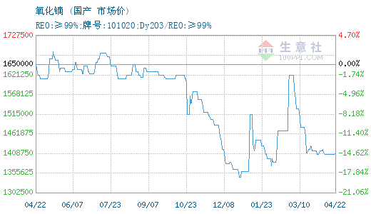 4月20日,氧化镝参考价为1405000.00,与4月1日持平 2026-04-20 16:38