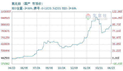 更多>>生意社:4月22日国内镨钕系稀土价格上...