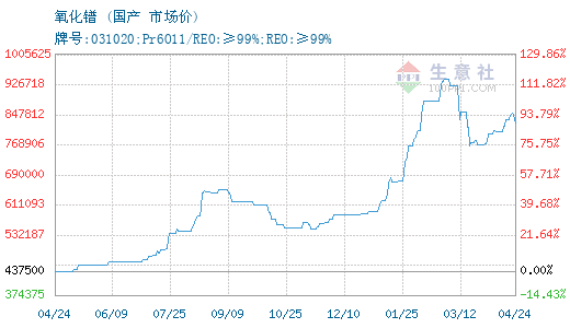 - 04-234月23日生意社氧化镨基准价为852500.00元/吨