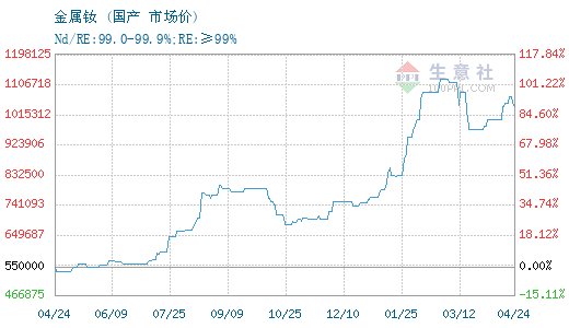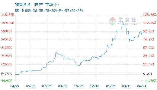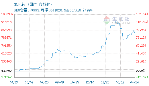 更多>>生意社:4月23日国内镨钕系稀土价格下...