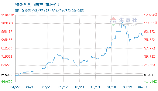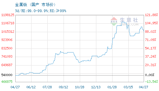 更多>>生意社:4月24日国内镨钕系稀土价格下...