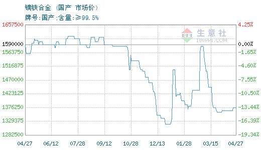 - 04-24生意社:4月24日钬铁合金出厂参考报价暂稳