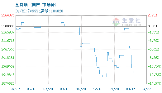 4月24日,金属镝参考价为1920000.00,与4月1日持平 2026-04-24 16:38