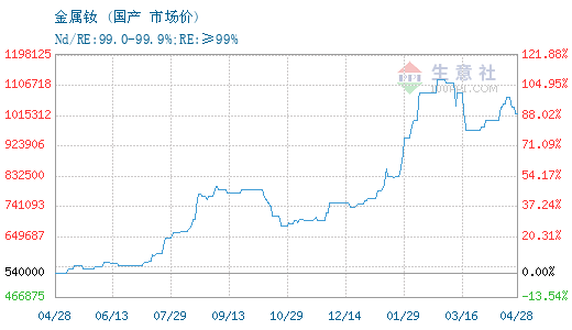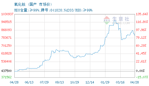 更多>>生意社:4月27日国内镨钕系稀土价格下...