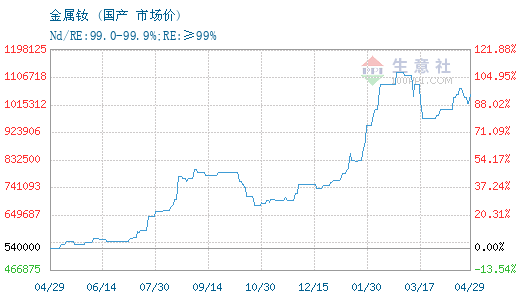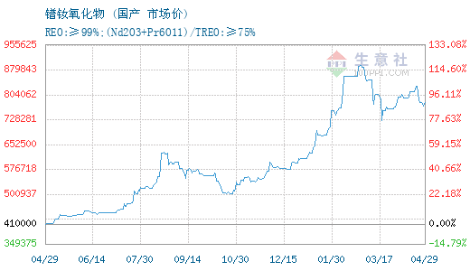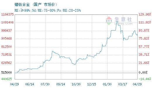 更多>>生意社:4月28日国内镨钕系稀土价格下...