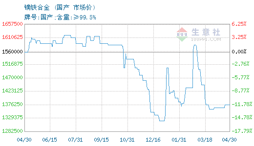 - 04-29生意社:4月29日钬铁合金出厂参考报价暂稳
